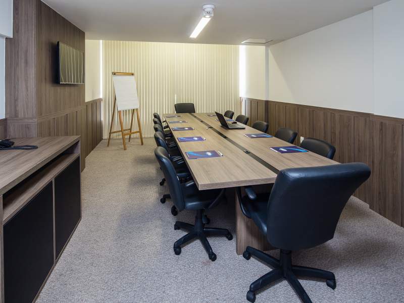 Perfeita para reuniões ate 12 pessoas com mesa unica. A sala Valença possui 26 m² e 2,5 mts de pé direito, e conta com uma TV de led 42" para projeção via HDMI.